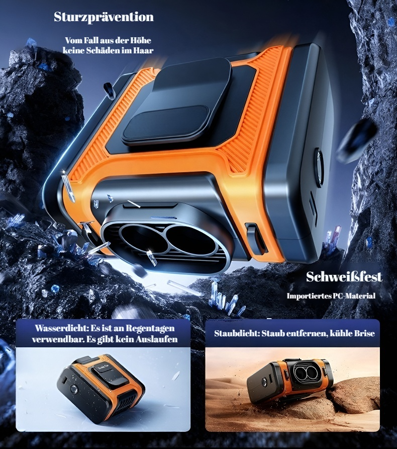 ● Leistungsstarker Outdoor-Ventilator mit zwei verstellbaren Luftauslässen sorgt für eine erfrischende Abkühlung an heißen Tagen und hält Sie unterwegs angenehm kühl. ● Praktische Befestigung an der Taille ermöglicht Ihnen maximale Bewegungsfreiheit beim Wandern, Arbeiten im Freien oder bei Outdoor-Aktivitäten. ● Wiederaufladbarer Akku garantiert langanhaltende Nutzung, während das leichte und kompakte Design kaum spürbar ist und einfach transportiert werden kann. ● Der geräuscharme Betrieb sorgt dafür, dass Sie den Ventilator auch in ruhigen Umgebungen ungestört nutzen können, ohne andere zu stören. ● Ideal für Camping, Gartenarbeit, Festivals oder Ausflüge – dieser tragbare Ventilator ist Ihr perfekter Begleiter für jede Outdoor-Situation.